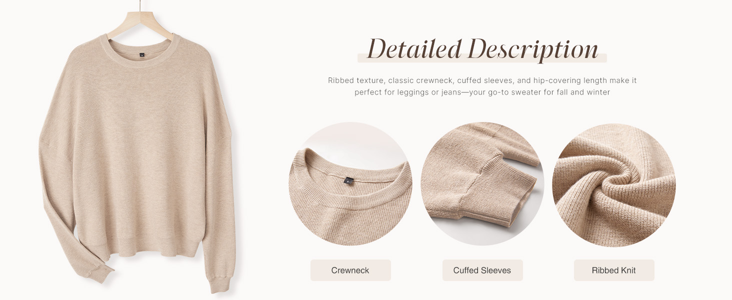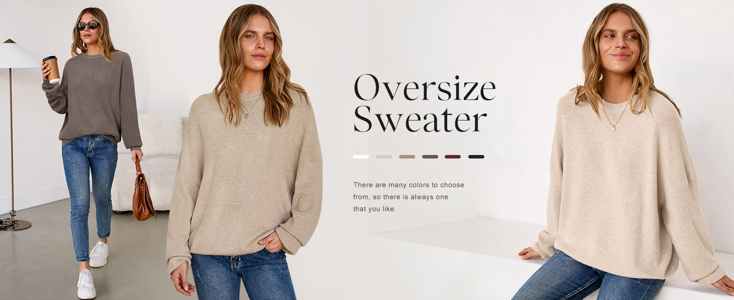 • Arach&Cloz Women's Wool Blend Oversized Sweaters Crewneck Casual Fall Outfits Fashion Tops