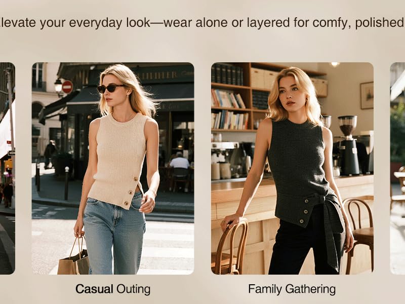 Arach&Cloz Women's Wool Blend Slit Sweater Tank