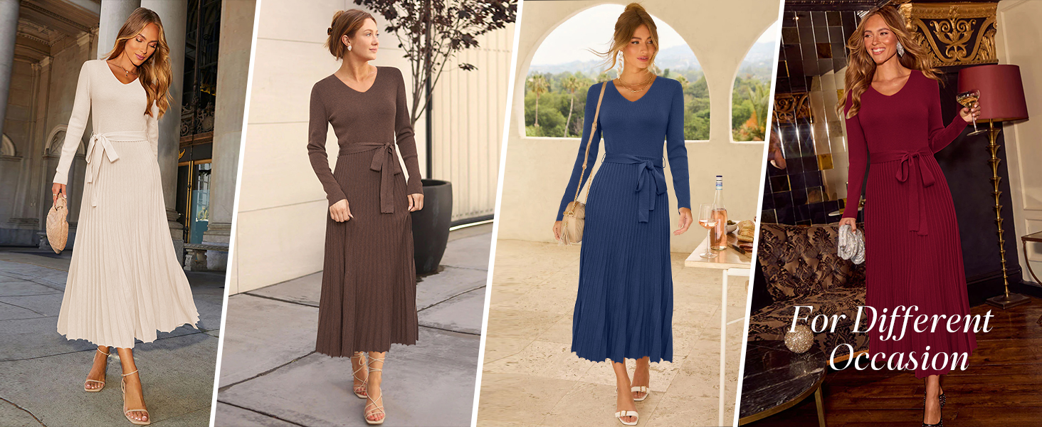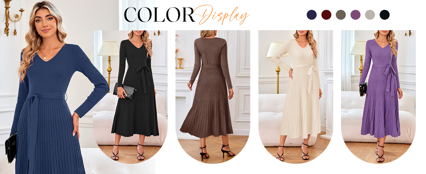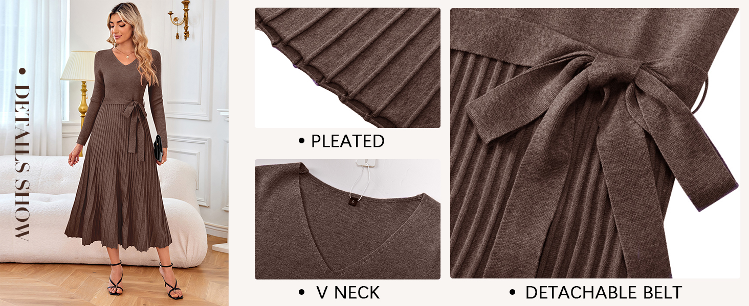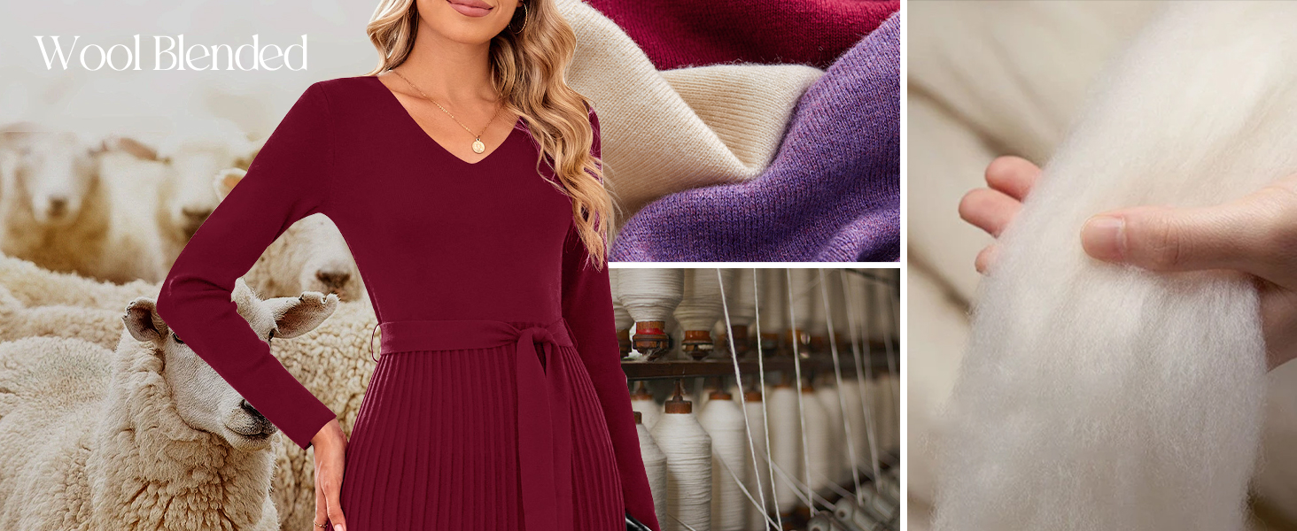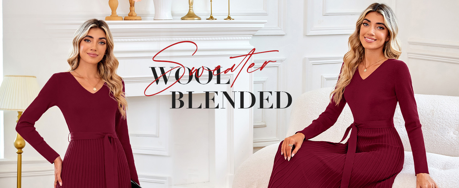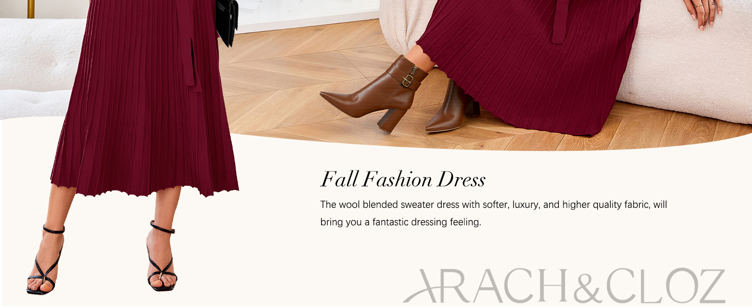 • Arach&Cloz Women's Wool Blend Tie Waist Pleated Fall Sweater Dress 2025