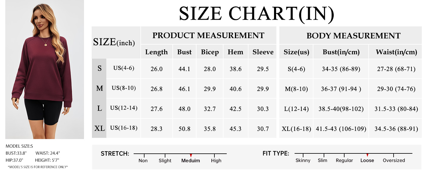 KAKOLA Women's Raglan Sleeve Sweatshirt - Solid Oversized Casual Pullover Tops