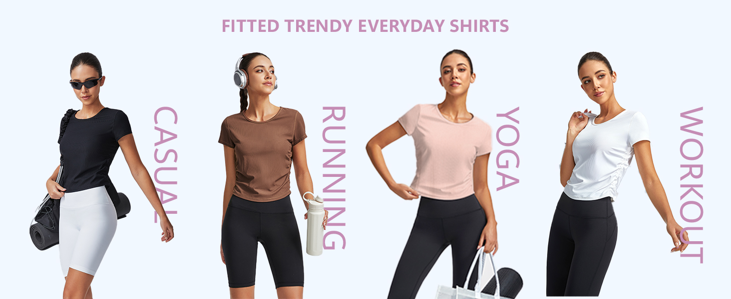 Athletic short sleeve crop tops designed with a round neckline flowing and elegant, simple and stylish. Ideal for yoga, fitness and casual wear.