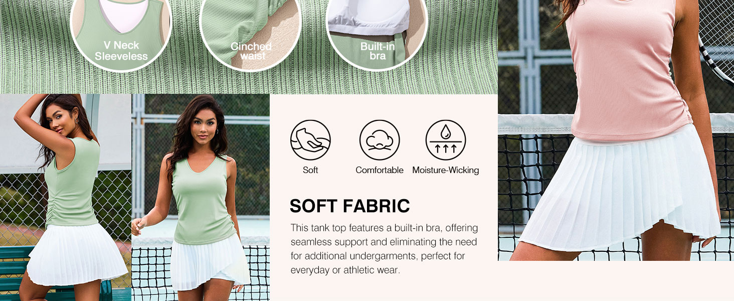 • Dokotoo Tank Top with Built in Bra for Women Casual Summer Sleeveless Tops Slim Fitted V Neck Ruched Cami Shirts