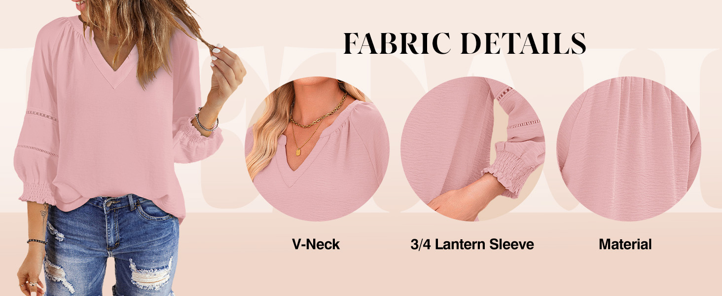 Dokotoo 3/4 Lantern Sleeve Casual V-Neck Pleated Loose Tunic Hollow-Out Blouse
