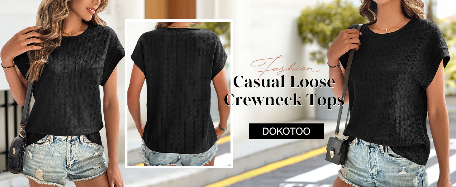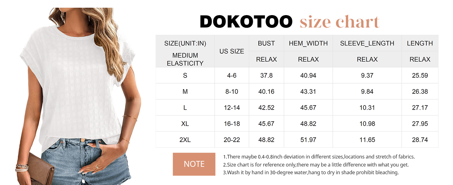 • Dokotoo Womens Blouses Summer Casual Cap Short Sleeve Tops Basic Textured Solid Color Round Neck T Shirts Blouse