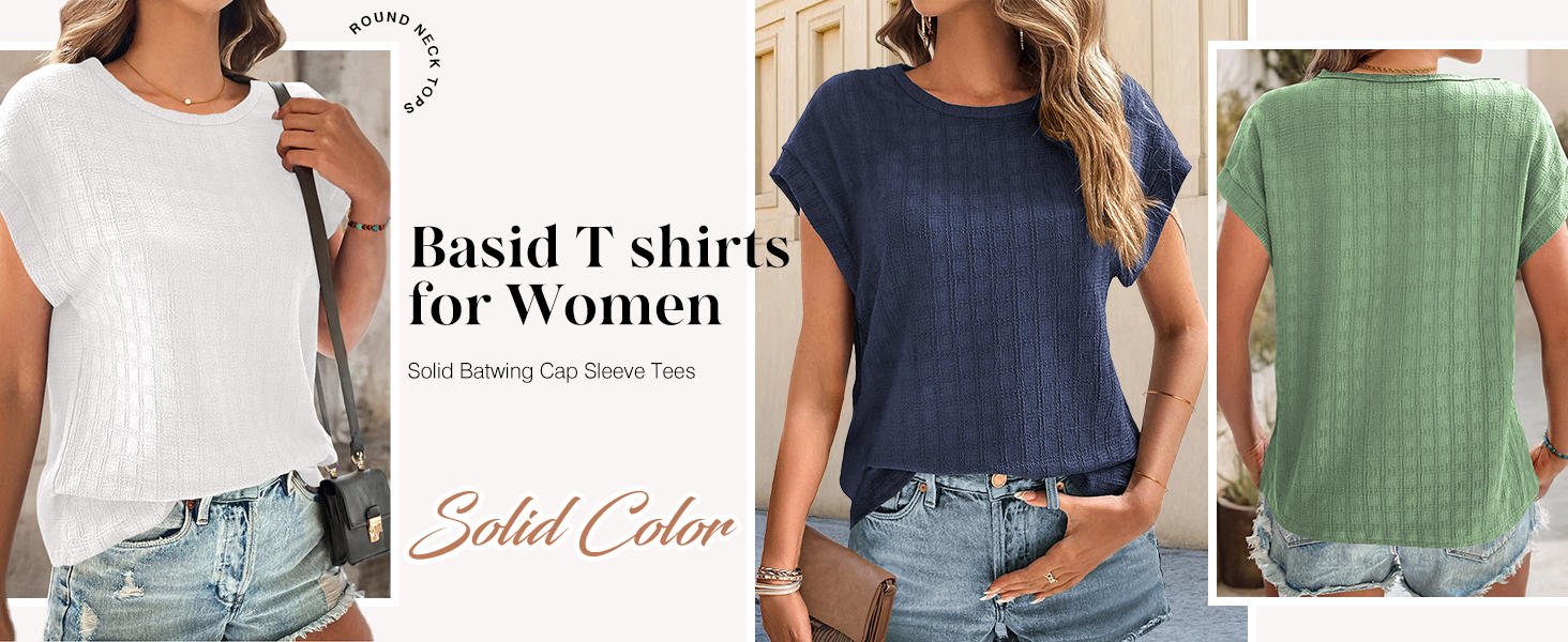 Features: Short Sleeve, Tops for Women Trendy, Summer Tops, Loose Fit, Solid Color T Shirts, Cap Sleeve/Batwing Sleeve,Crewneck, Basic Tees for Women,Casual Dressy Tops for Women