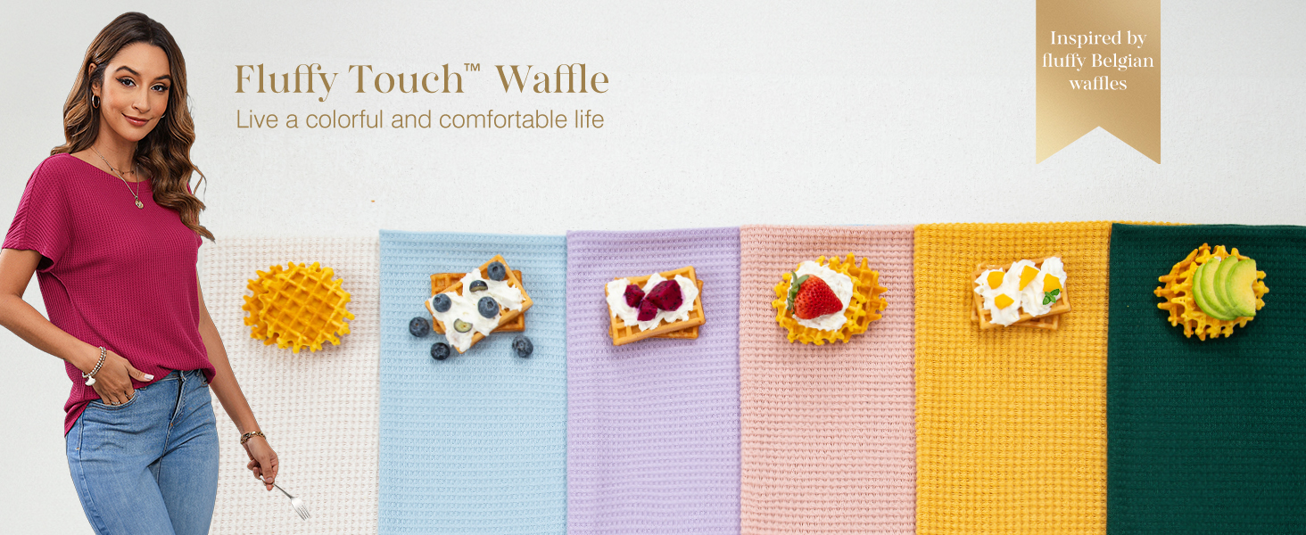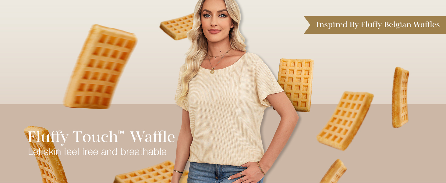 • Dokotoo Women's Casual Boat Neck Short Sleeve Waffle Knit Shirts Loose Summer Tunic Tops Blouses