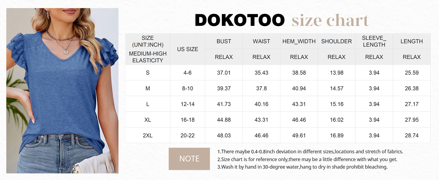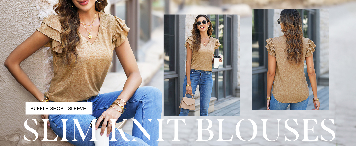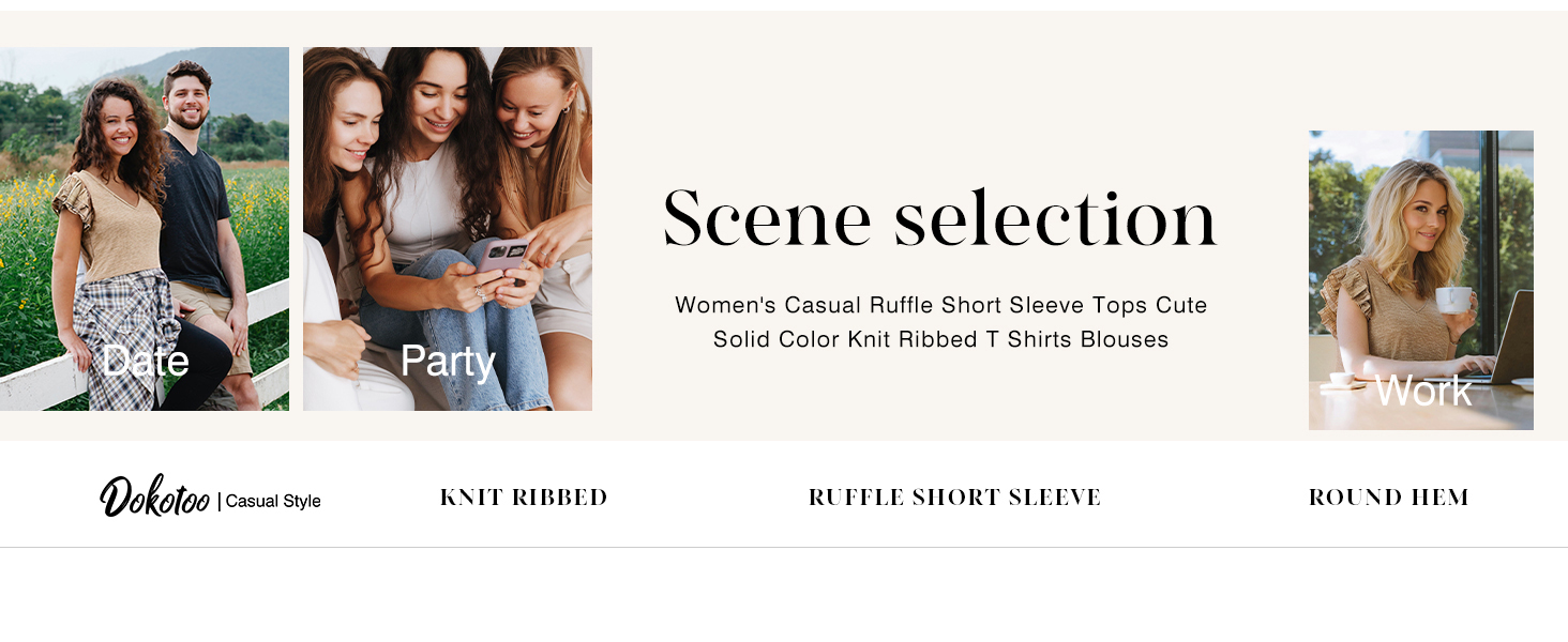 • Dokotoo Women's Casual Ruffle Short Sleeve Tops Cute Solid Color Knit Ribbed T Shirts Blouses