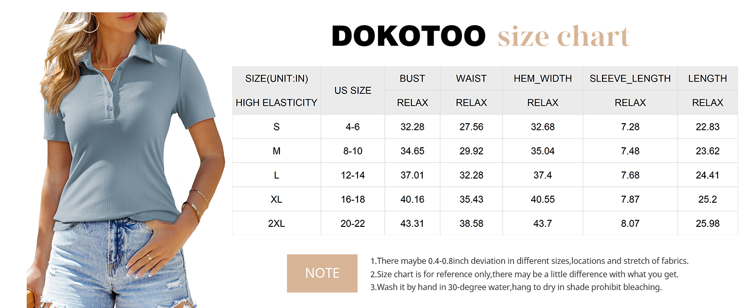 • Dokotoo Womens Polo Shirts Short Sleeve Collared V Neck T Shirts Summer Blouses Business Casual Tops