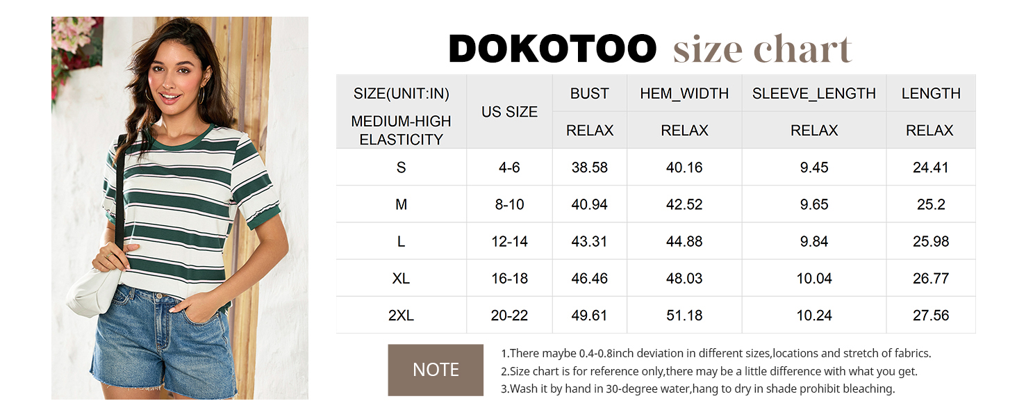 Dokotoo Short Sleeve T Shirts for Women Striped Summer Women Blouses Basic Tees