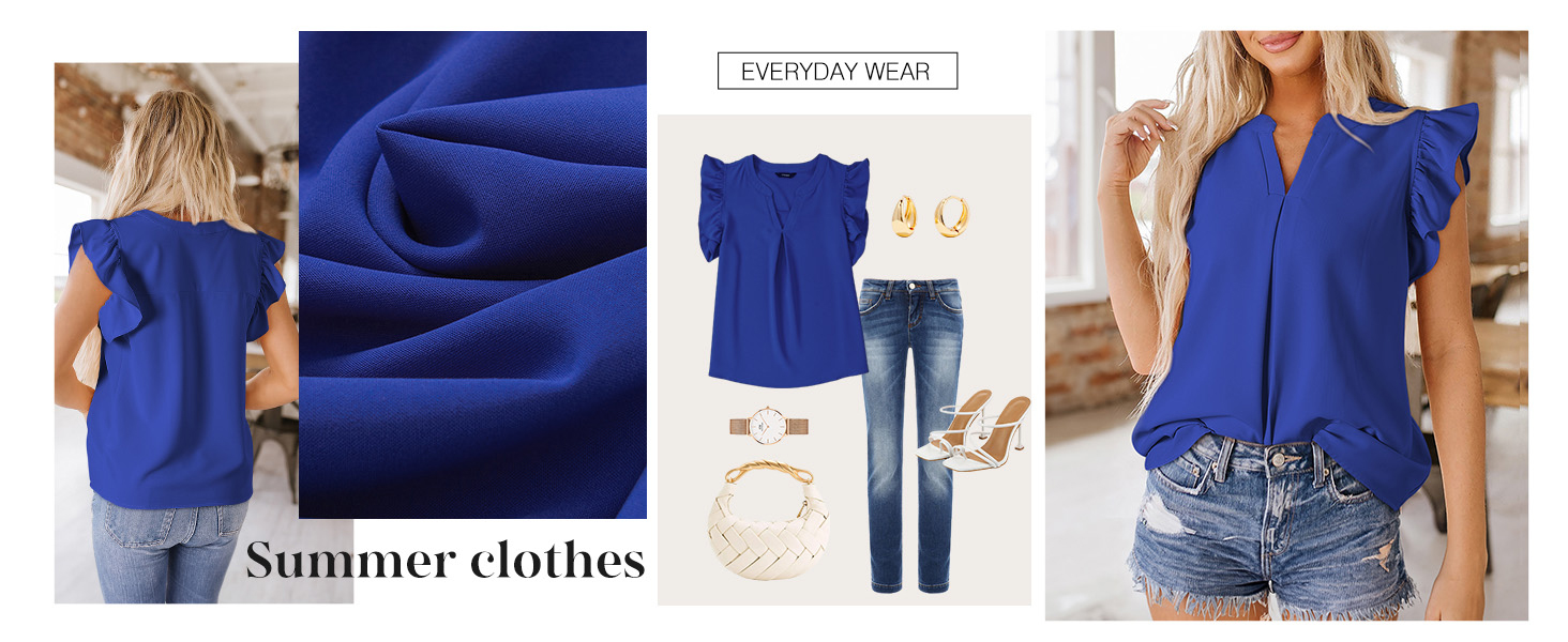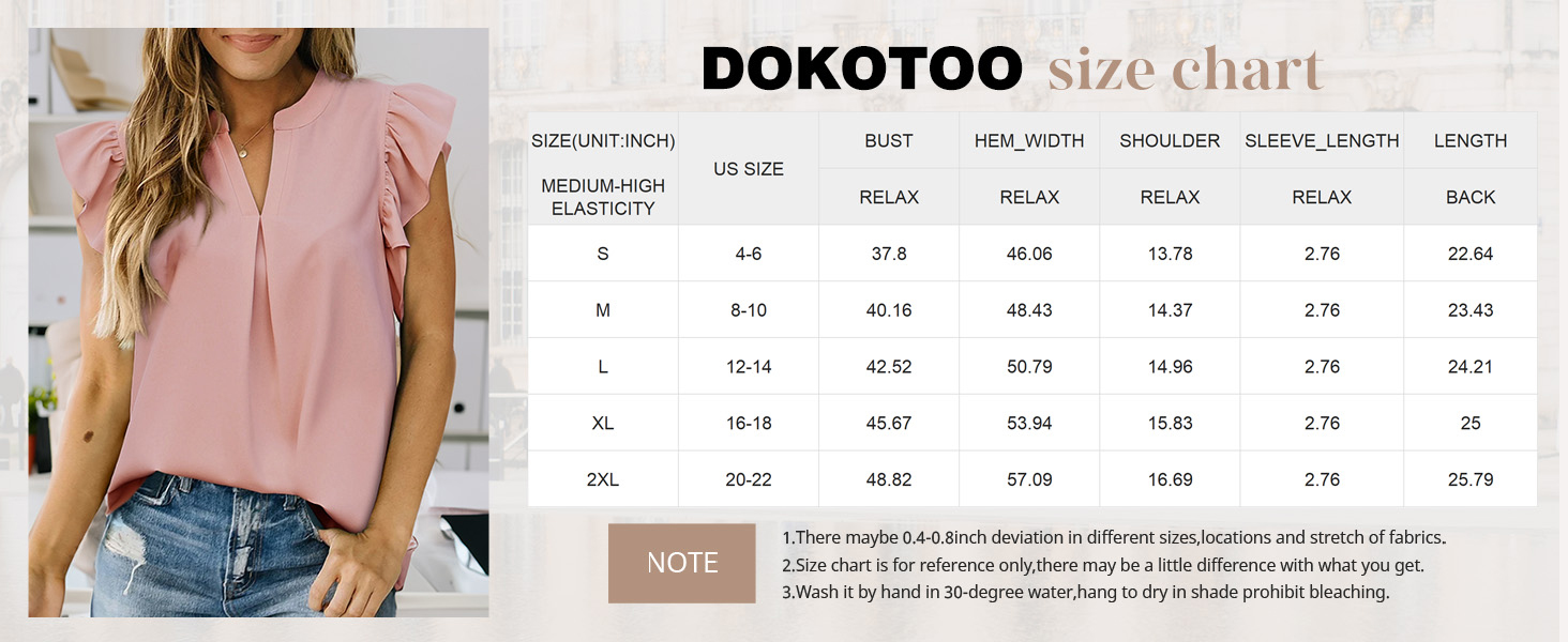 • Dokotoo Womens Summer Tops Dressy Casual V Neck Ruffle Short Sleeve Solid Blouses Tops