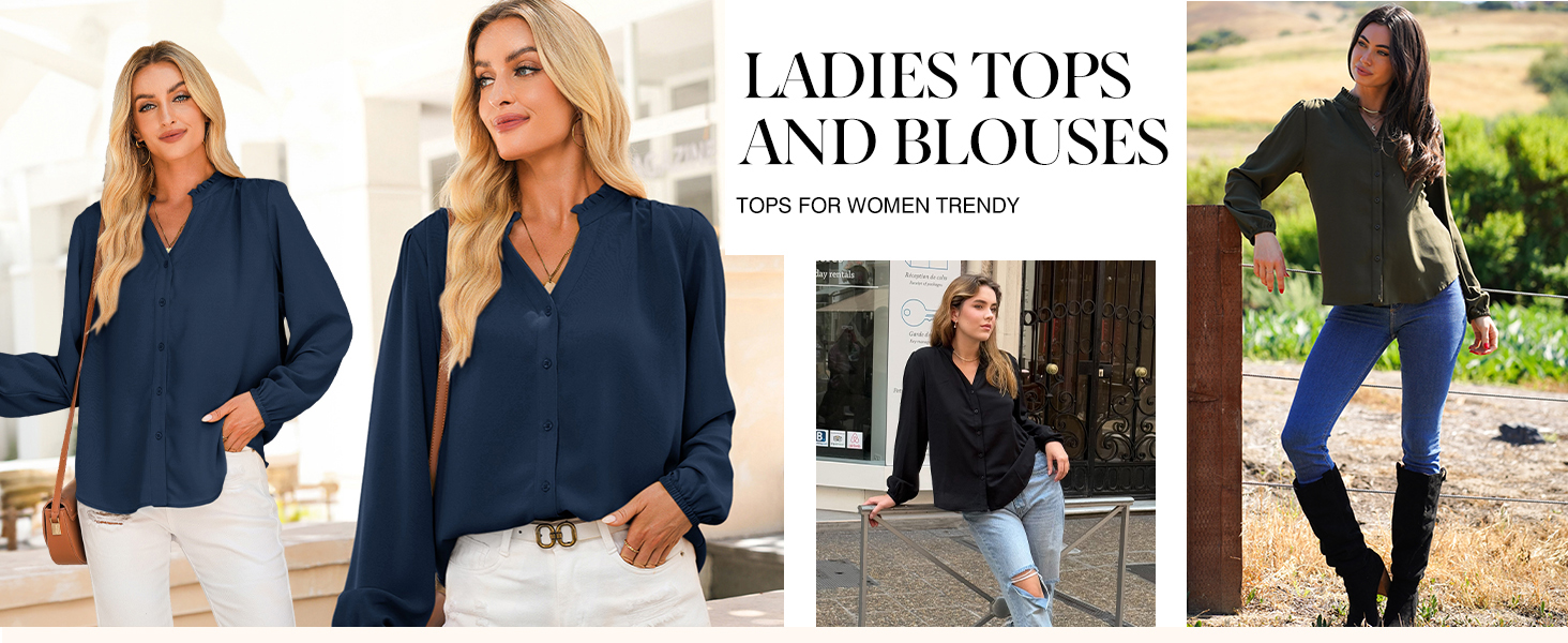 Dokotoo Tops for Women Trendy Button Down V Neck Shirts