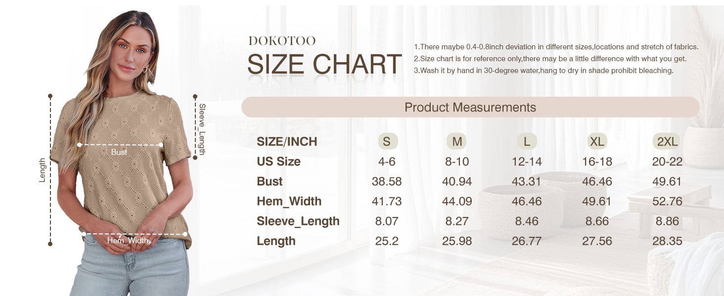 • Dokotoo Women's Tops Casual Scoop Neck Short Sleeve Eyelet Embroidered Hollow Out Blouses Shirts
