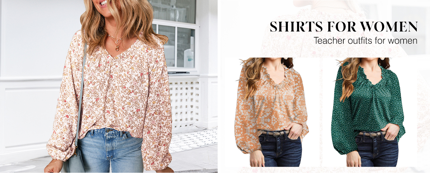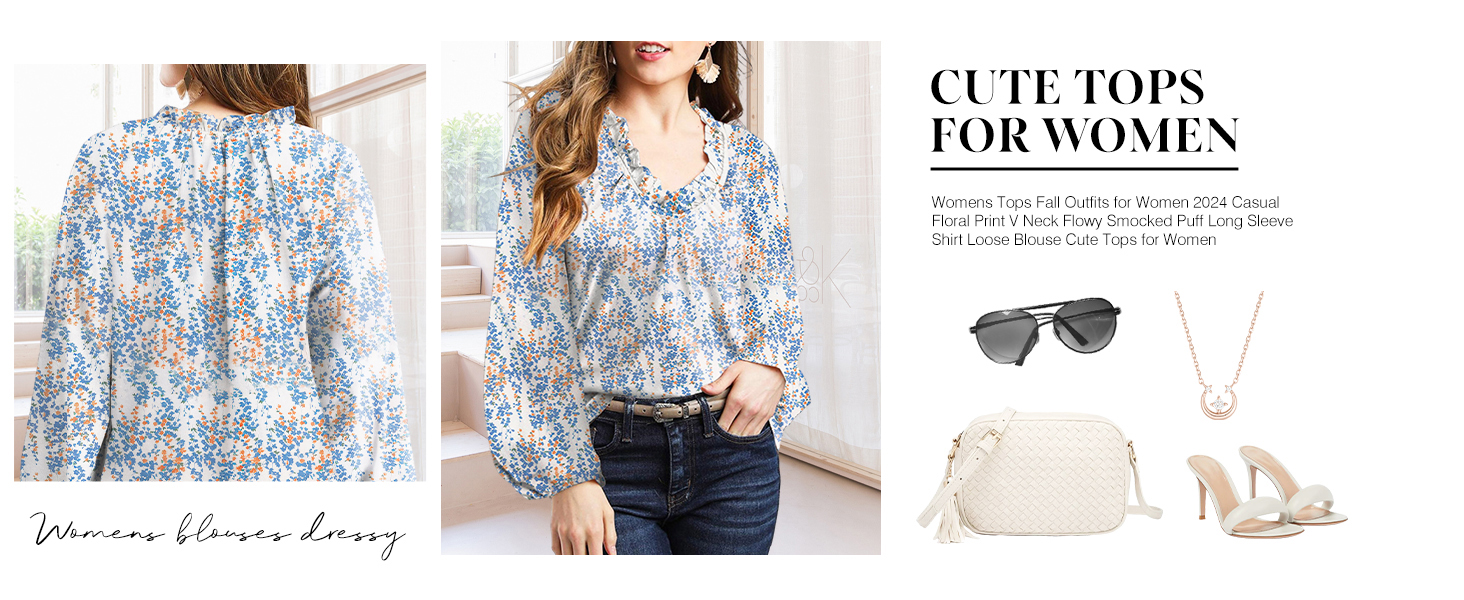 Features: Elegant Boho Shirt for Women, Sexy Casual V Neck Blouse, Relaxed Fit, Blouses for Women Fashion 2024, Womens Tops and Blouses, Long Sleeves with Elastic Cuffs, Cute Tops for Women Trendy, Alicia Flowy Print, Front Smocked, Business Dressy Work Tops for Women.