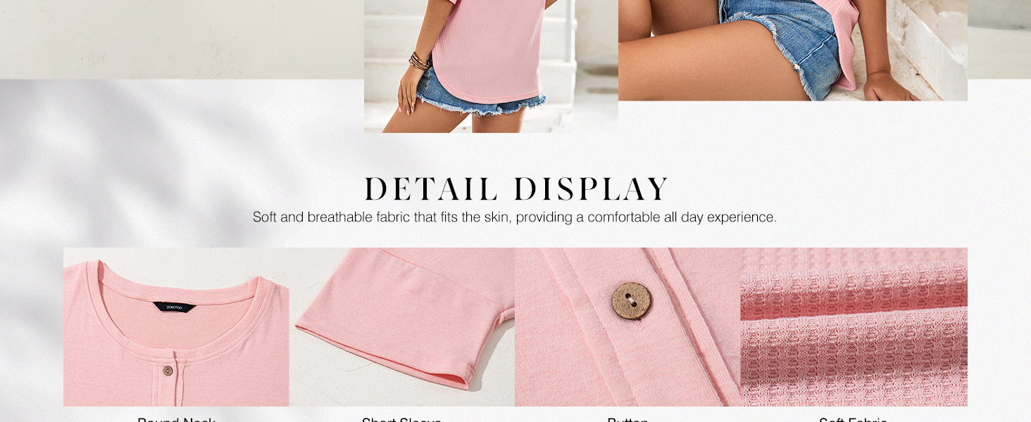 Dokotoo 3/4 Sleeve Casual Crew Neck Button Down Waffle Knit Tops