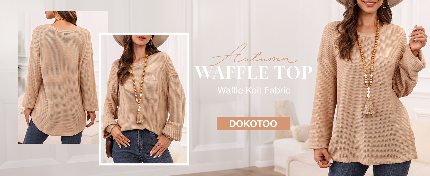Dokotoo Womens Tops 2025 Long Sleeve Waffle Tops