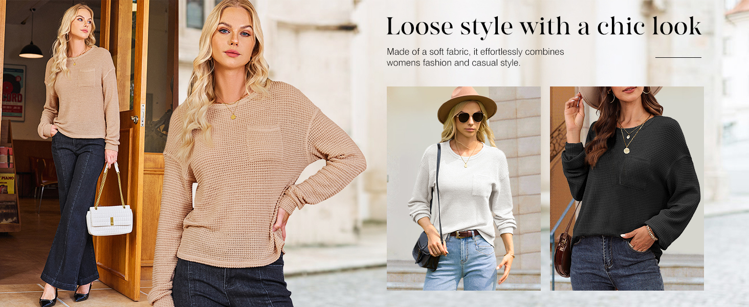 • Dokotoo Womens Waffle Knit Tops 2025 Oversized Long Sleeve Crewneck Shirts Business Casual Blouses Basic Shirts