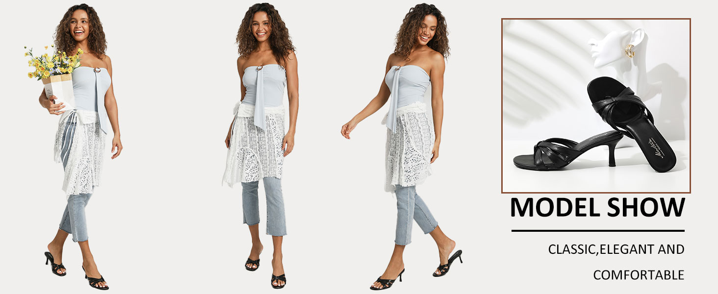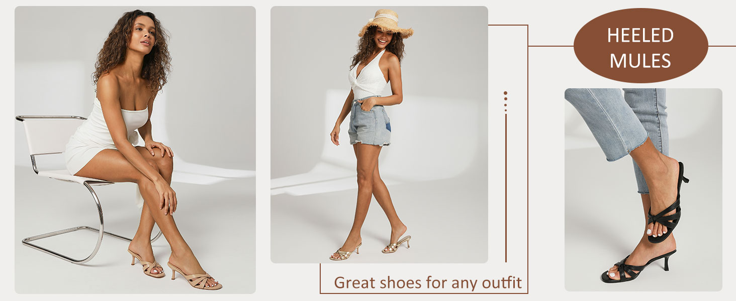 • Mostrin Strappy Kitten Heels for Women Round Open Toe Flip Flops Slip On Mules Heels Fashion Thong Heeled Sandals for Party Wedding Holiday