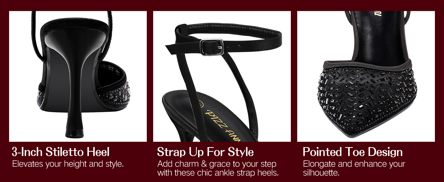 • PIZZ ANNU Women's Cienna High Heels Sexy Stiletto Pumps Closed Toe Mesh Sparkly Rhinestones Ankle Strap Dress Wedding Party Pumps Shoes