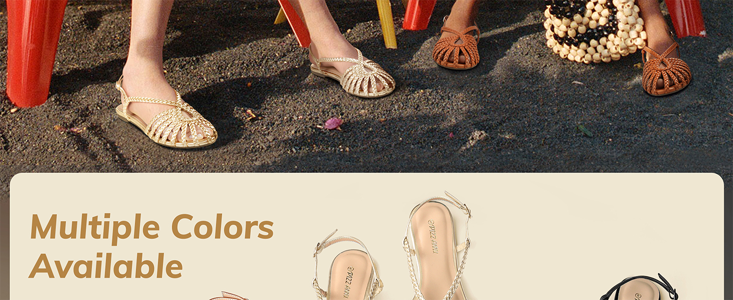 • PIZZ ANNU Women's Sophia Braided Flat Sandals Comfortable Memory Foam Walking Shoes Summer Gladiator Slingback Ankle Strap Strappy Sandals