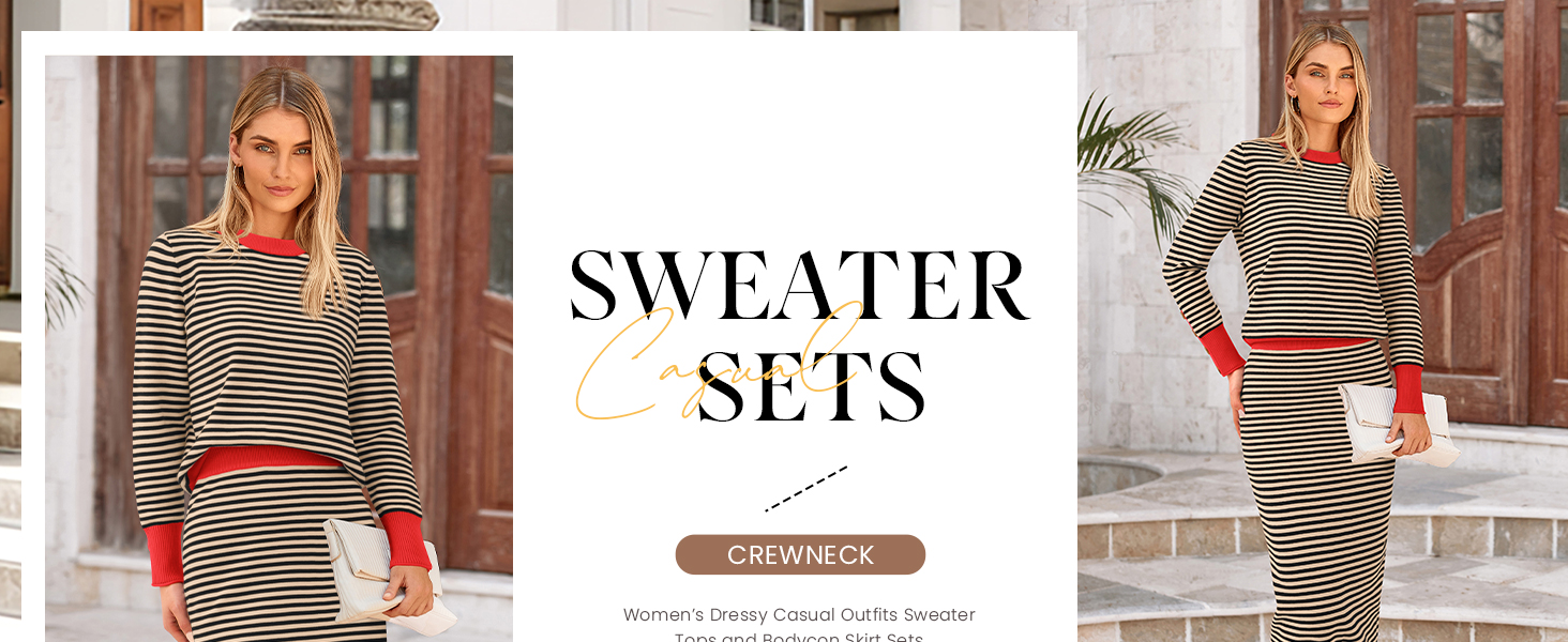 Women Striped Sweater Sets Offers A Unique and Flattering Appeal, Creating A Slimming Effect