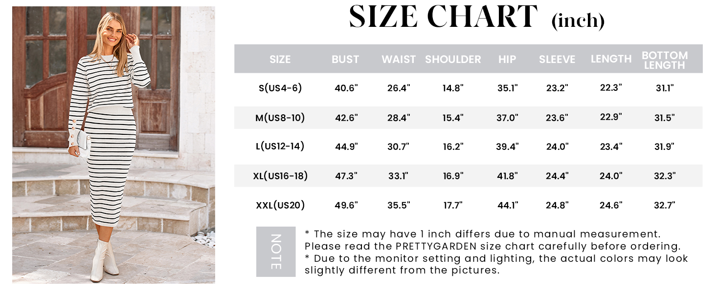 PRETTYGARDEN 2 Piece Outfits for Women Striped Pullover Sweater Long Skirt Sets