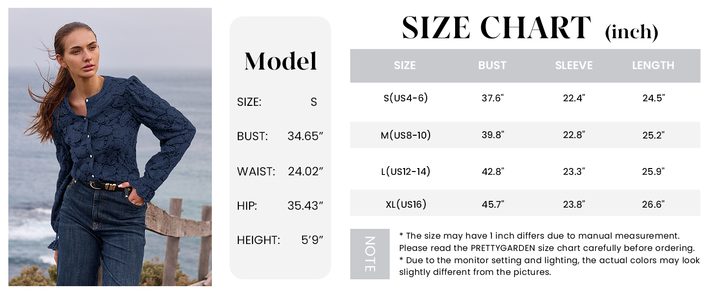 PRETTYGARDEN Women's Dressy Casual Lace Blouse Long Sleeve Button Up Shirts Tops Spring Fall Fashion Clothes