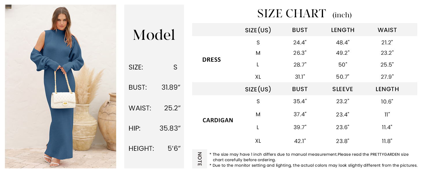 • PRETTYGARDEN Women's Fall 2 Piece Outfits Knit Long Sleeve Cropped Cardigan Pullover Sweater Maxi Dress Sets Winter Clothing