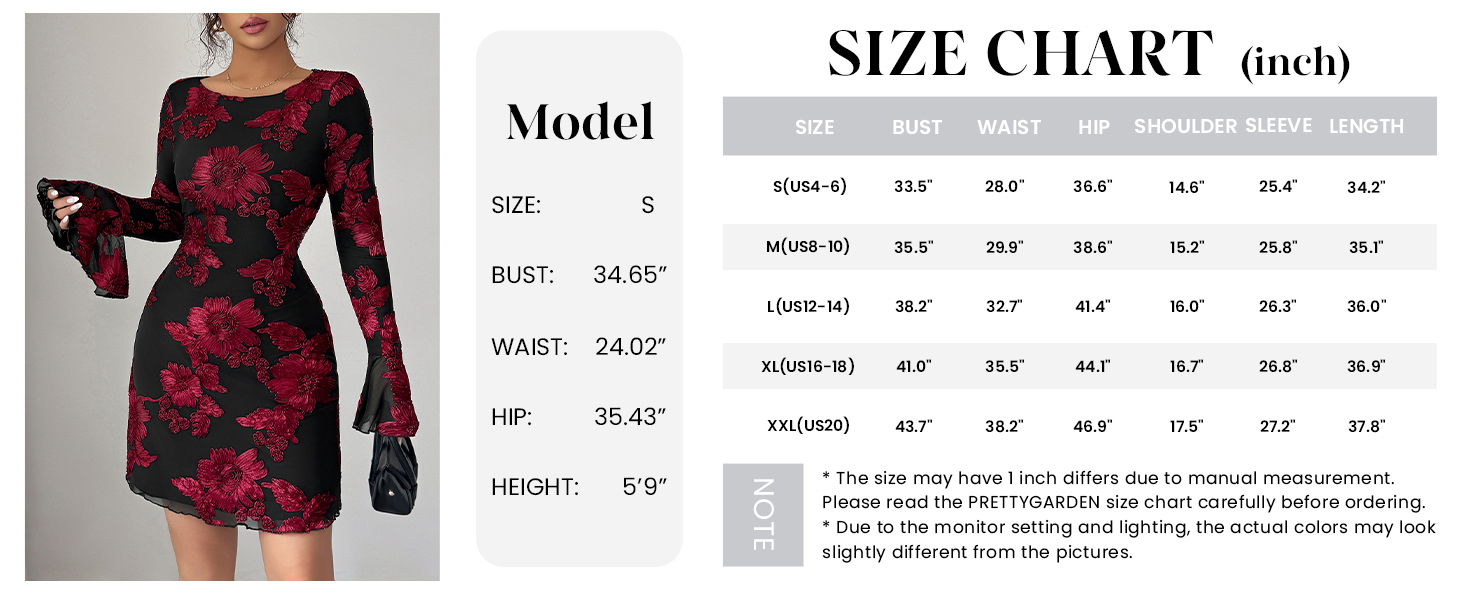 PRETTYGARDEN Women Fall Long Sleeve Floral Dress Bodycon Homecoming Dresses