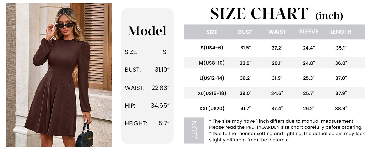 PRETTYGARDEN Fall Mini Dresses For Women 2025 Lantern Sleeve Ribbed Knit Dress