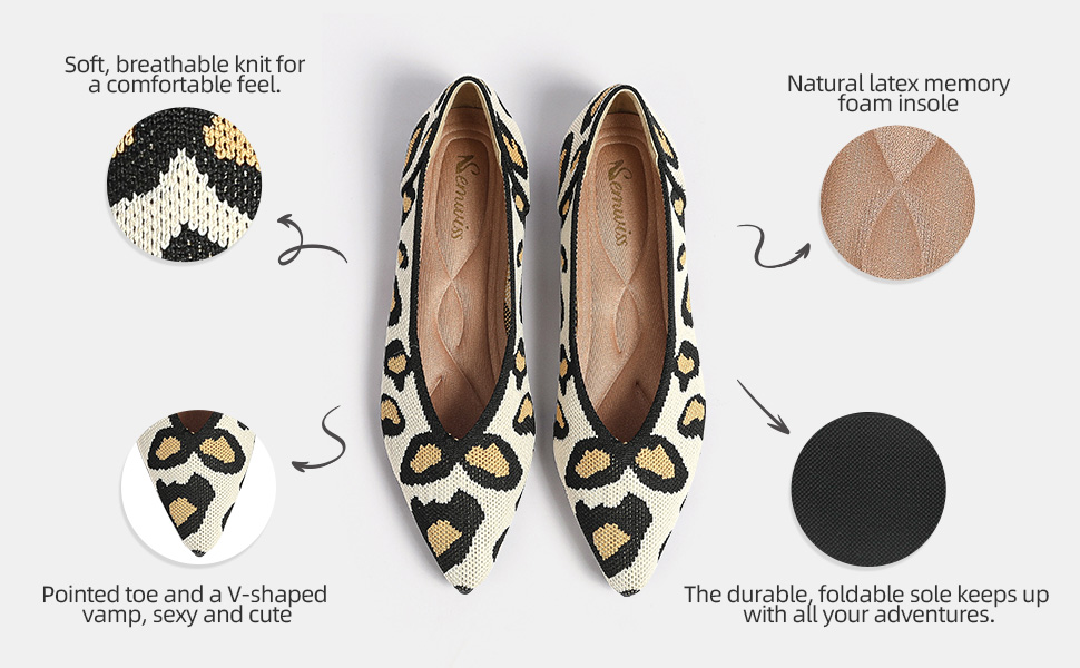 • Semwiss Women's Ballet Flats Comfortable Casual Dressy Shoes,Work Flats Office Shoes Pointed Toe Leopard Flats.