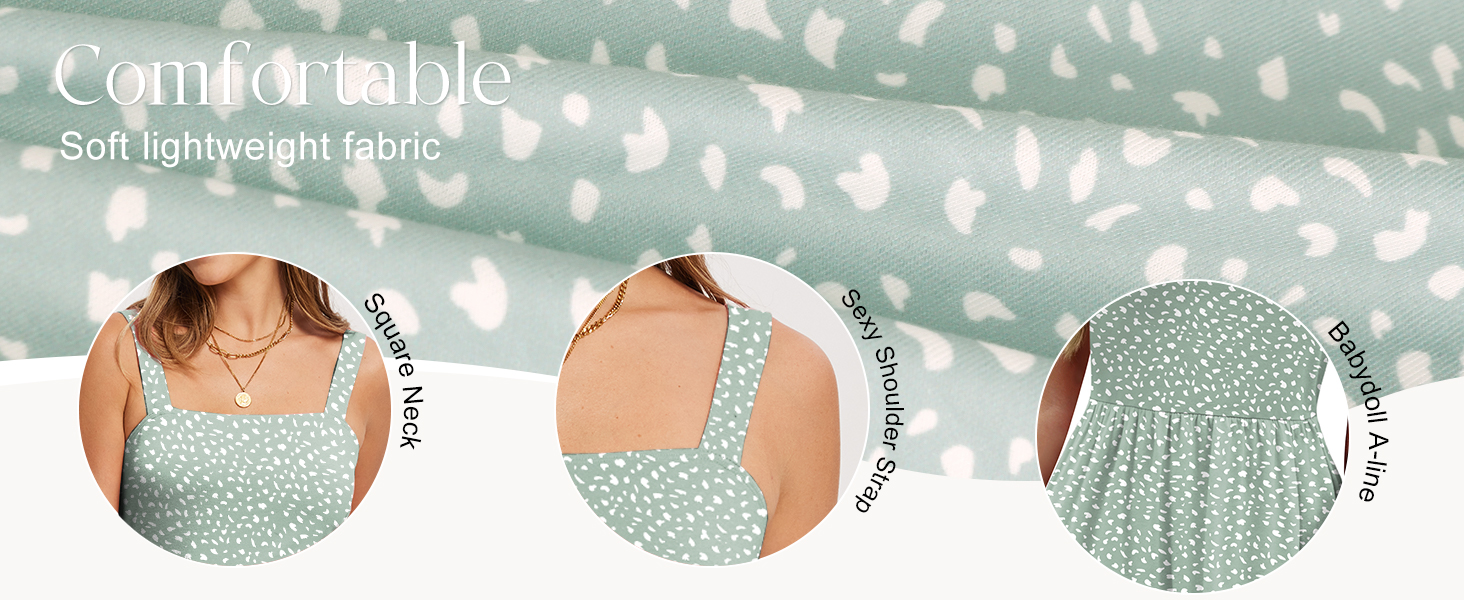 Flattering A-Line Sundress Design锛�Feminine silhouette with a gathered waist and babydoll waistline to accentuate curves, paired with a classic A-line skirt for effortless elegance.