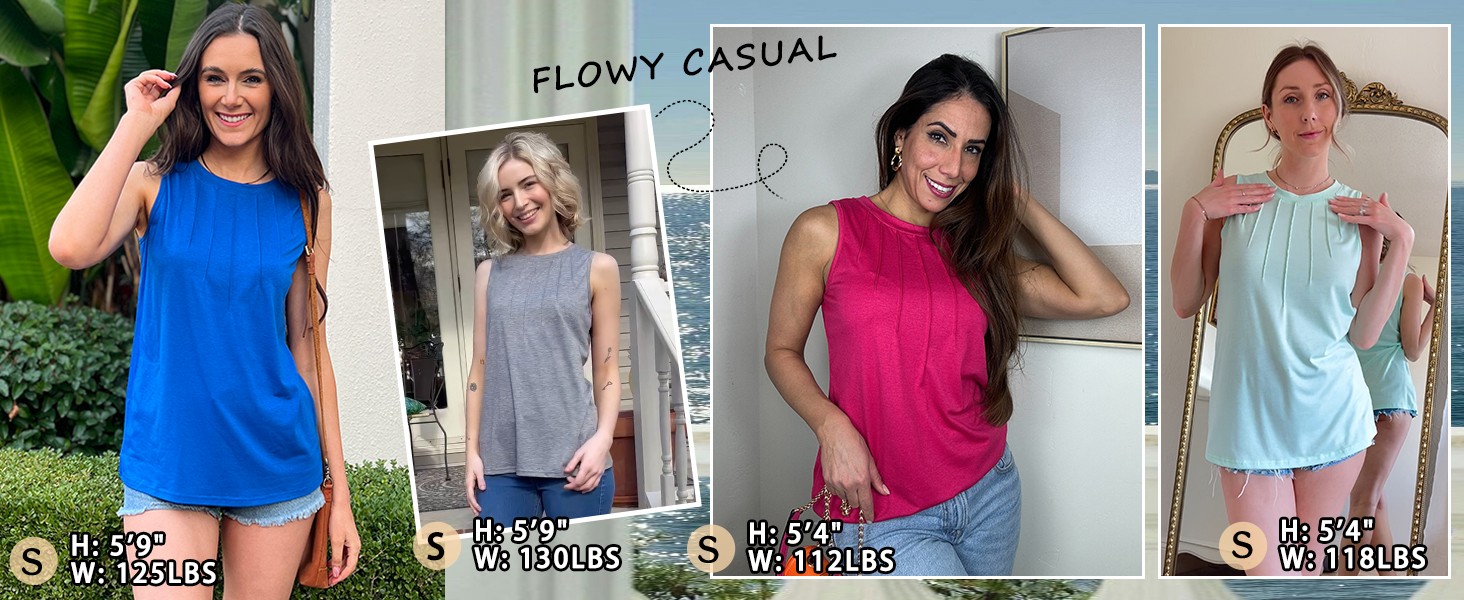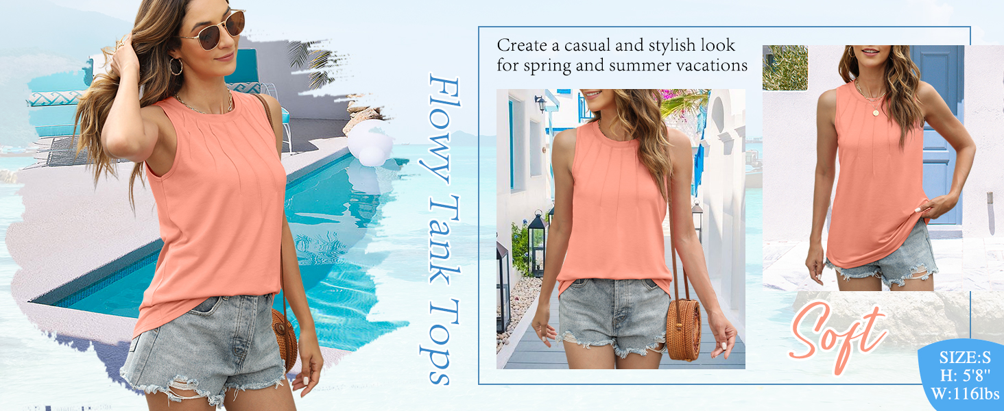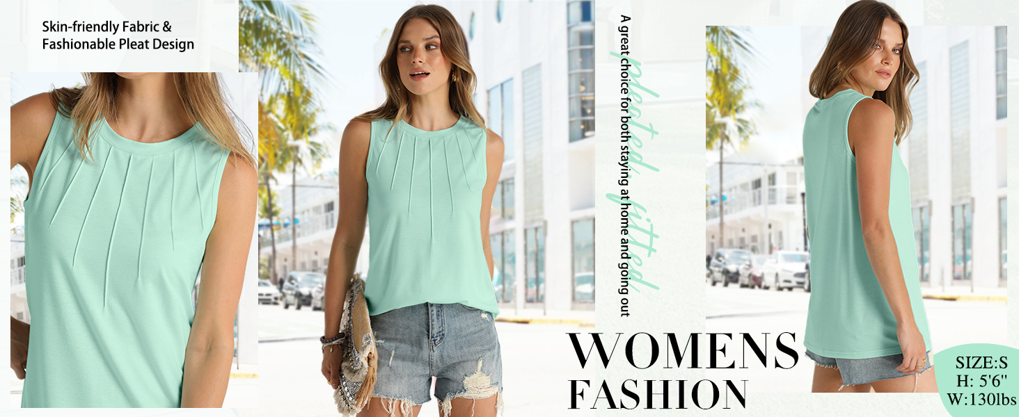 Womens Summer Tops 2025 Fashion Sleeveless Pleated Tank Tops