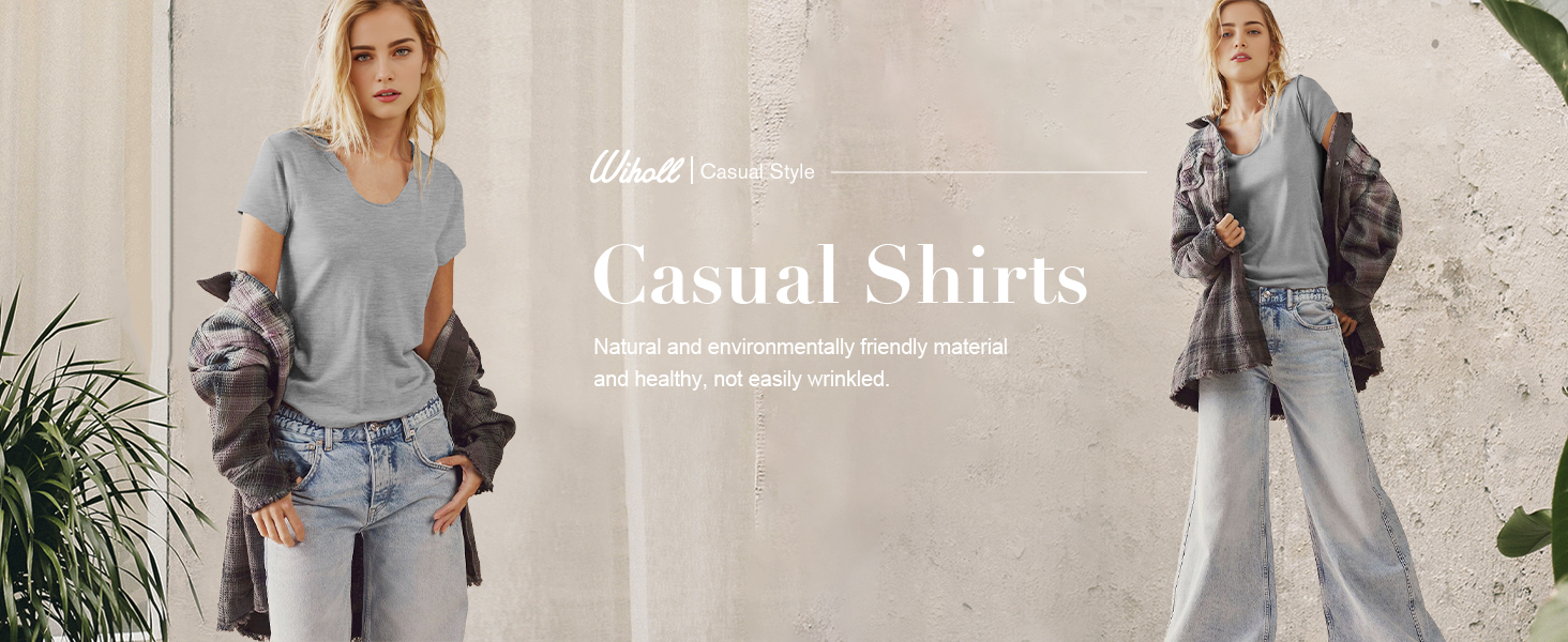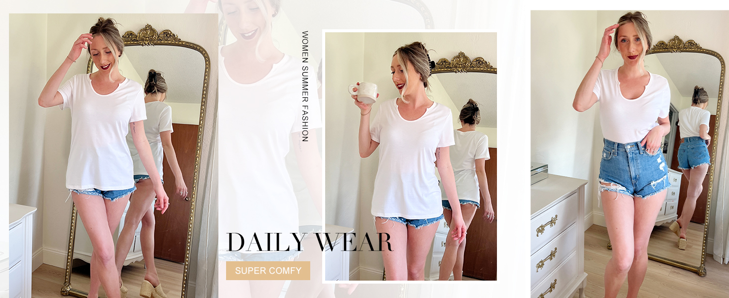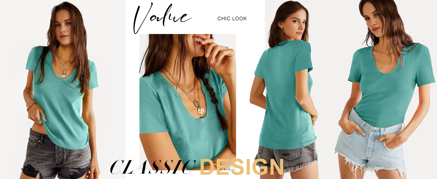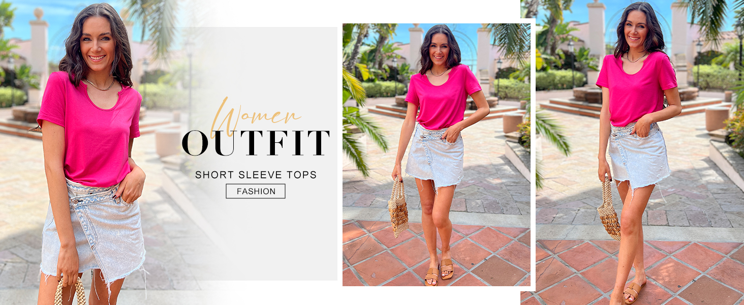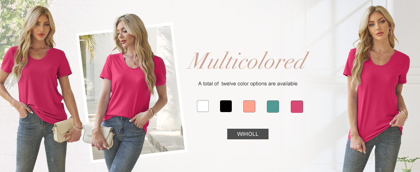 • WIHOLL Summer Tops for Women Scoop Neck Basic Tees Short Sleeve Casual T-Shirts Loose Fit