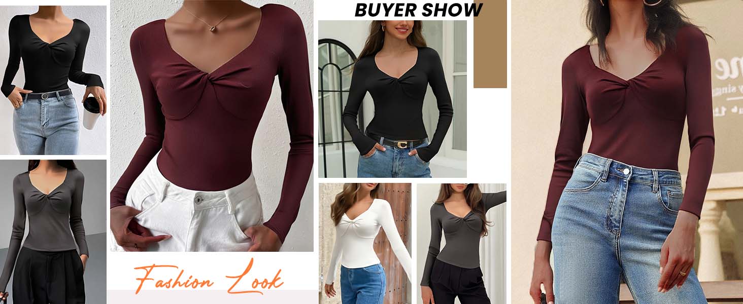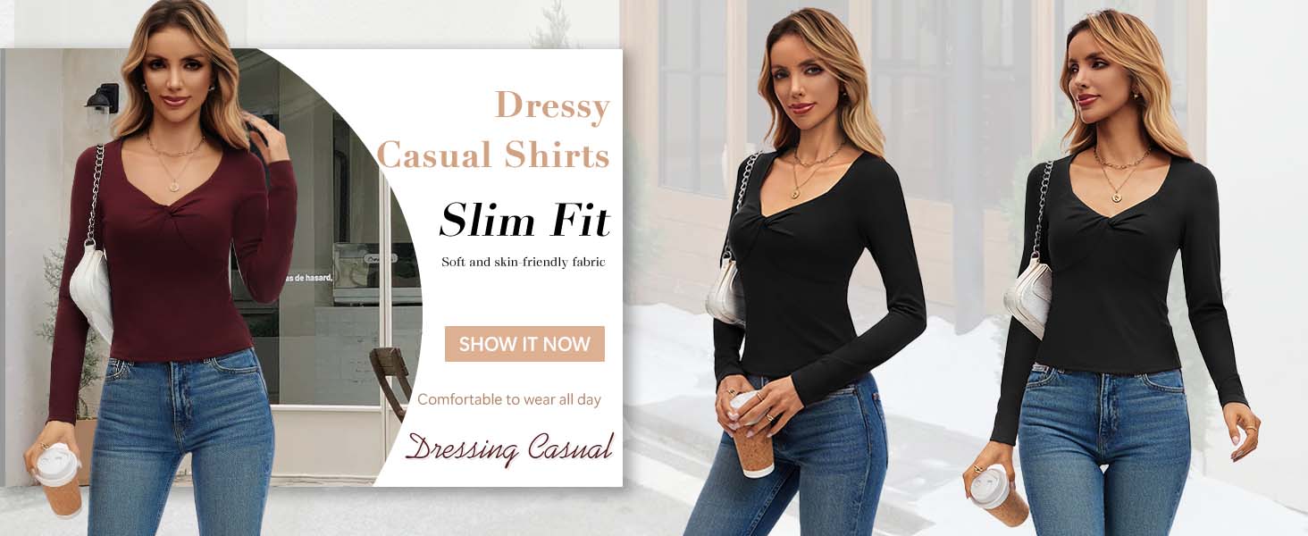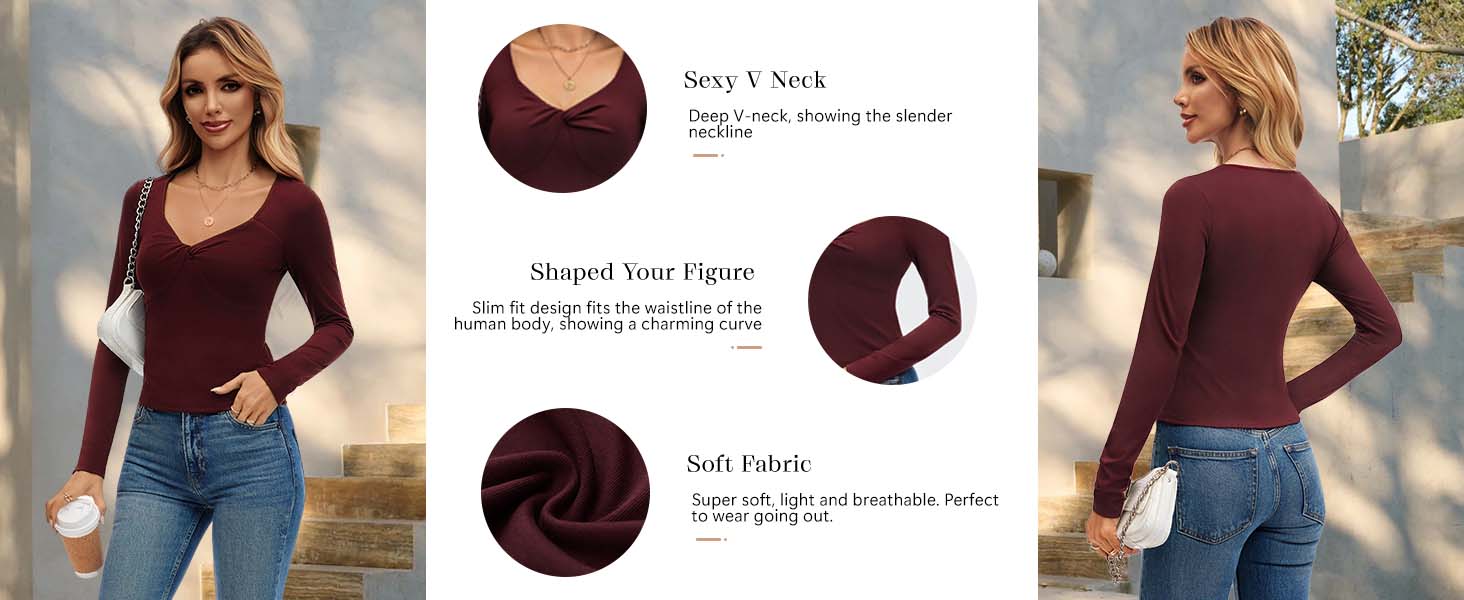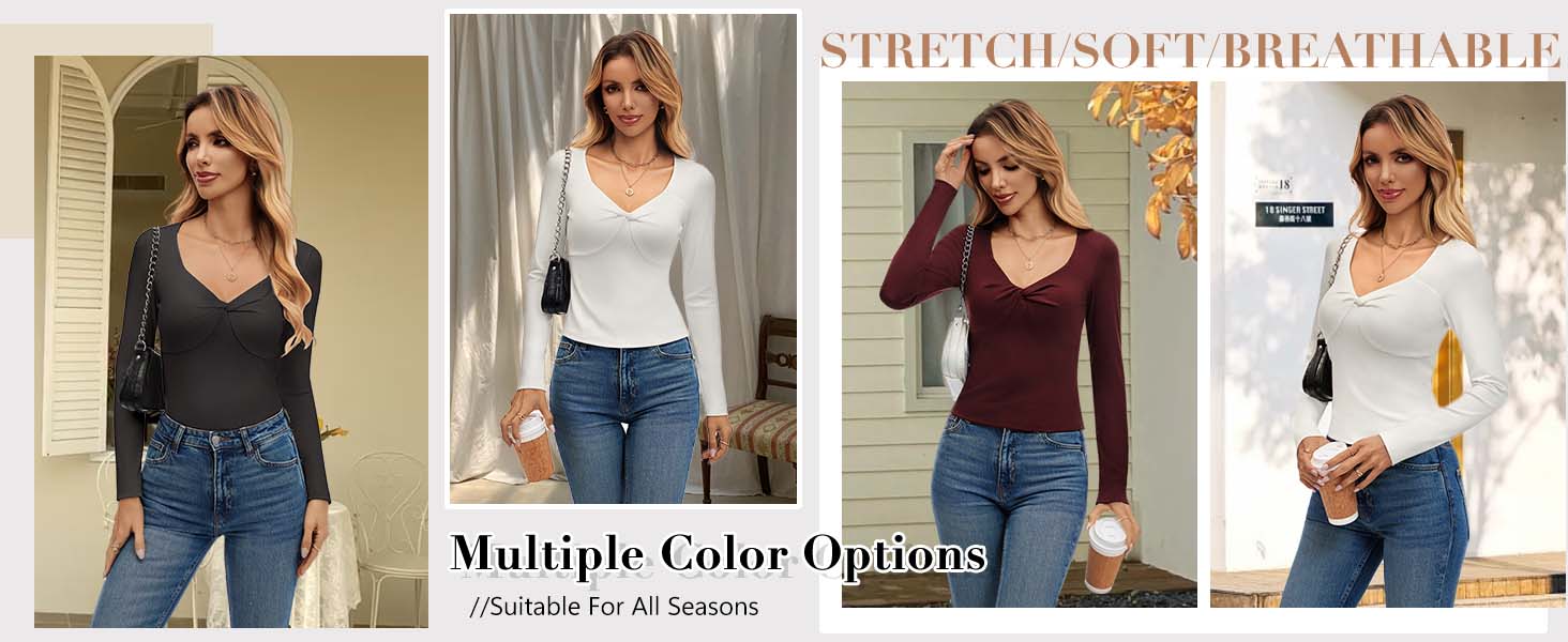 • Women's Long Sleeve Tops V Neck Twist Front Shirt Cute Going Out Top Trendy 2025 Basic Blouse